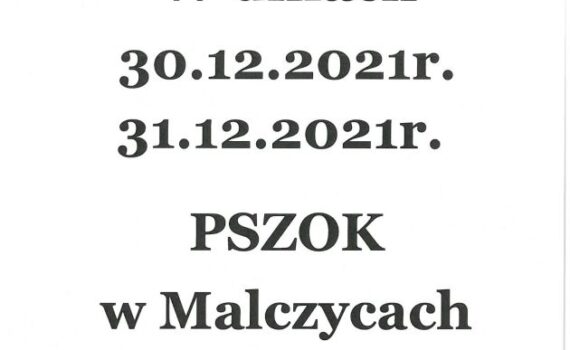 MUK sp. z o.o. Malczyceinformuje, że 24.12.2021 r.(piątek – WIGILIA) oraz 07.01.2022 r. (piątek) są u nas dniami wolnymi od pracy